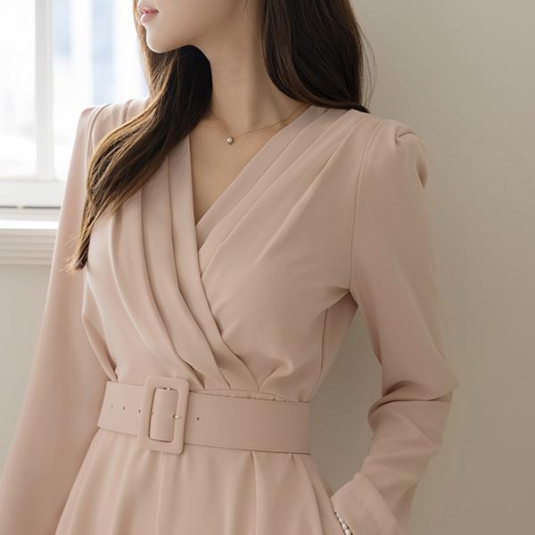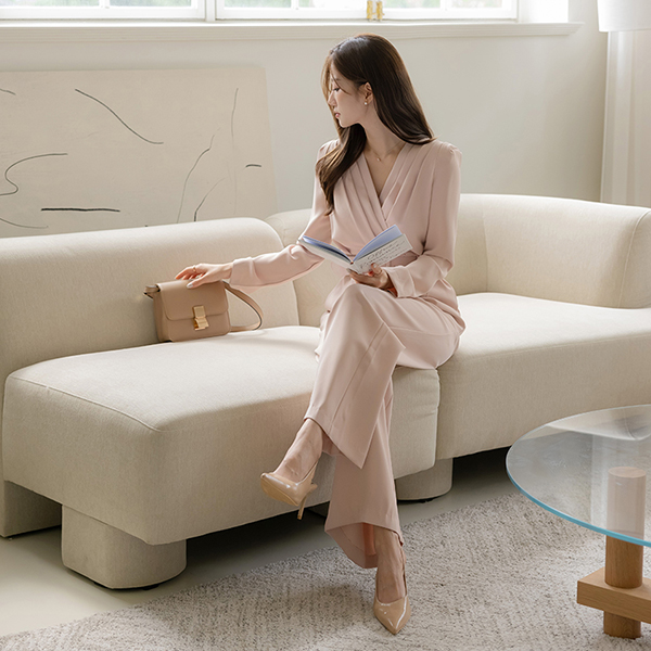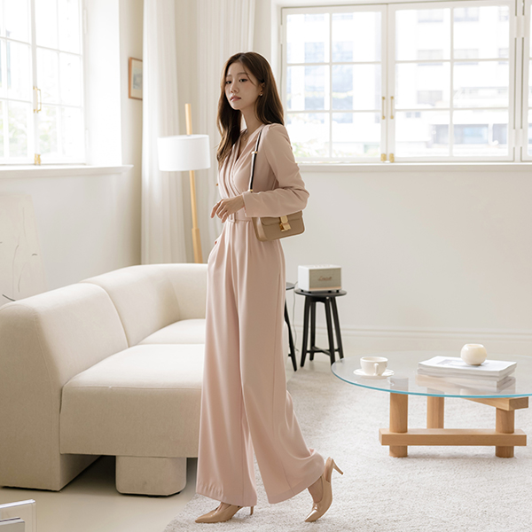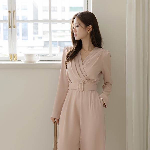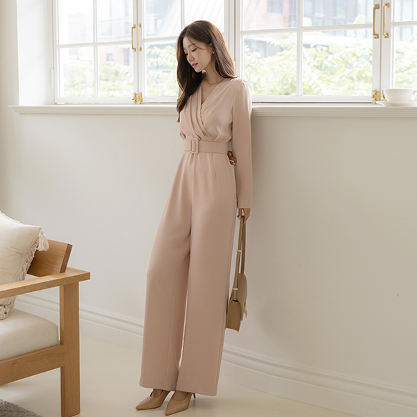Pintuck VNeck Wrap Style Belt (Set) Jumpsuit