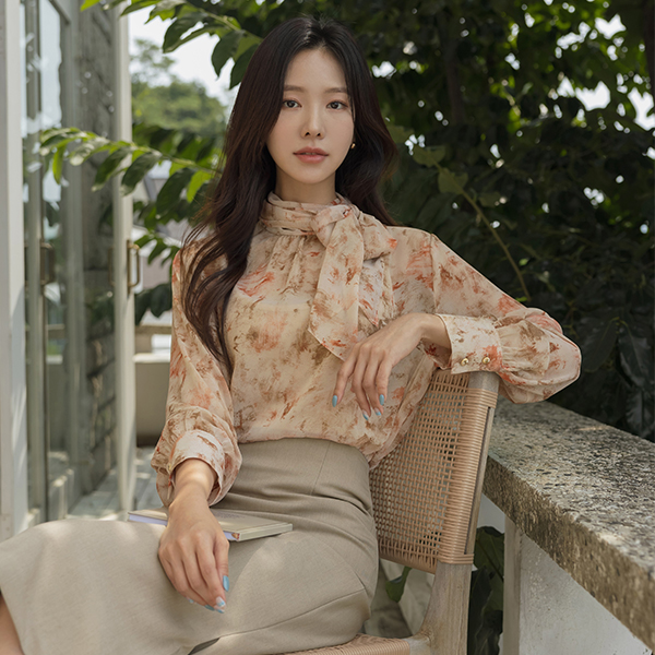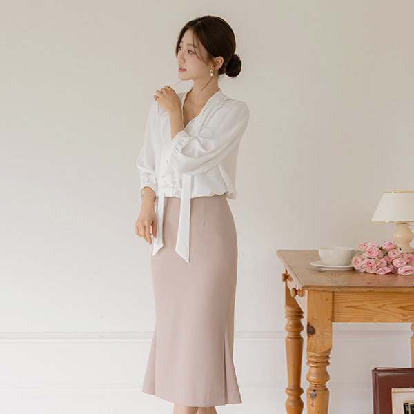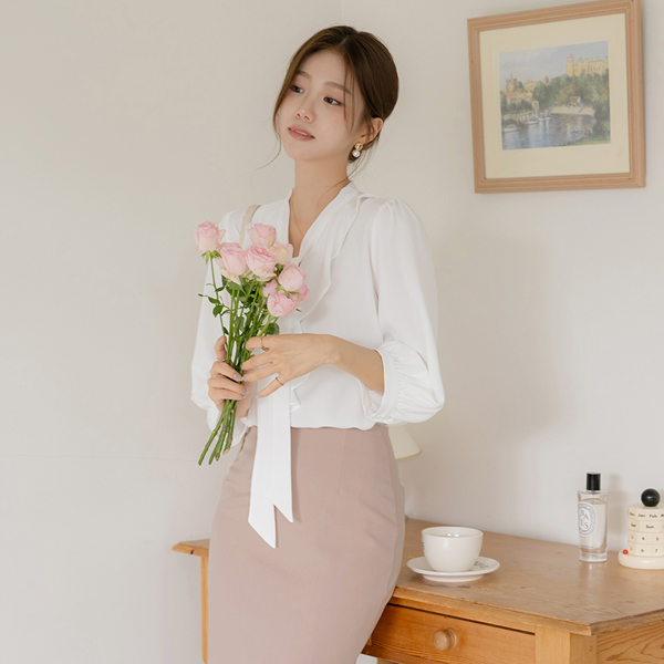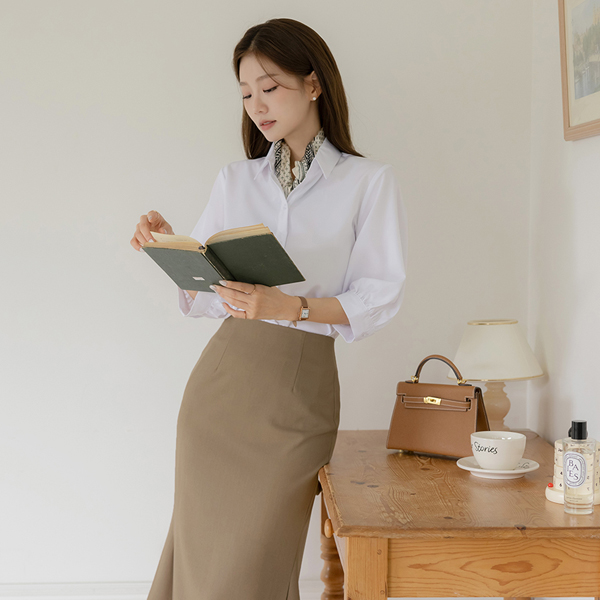 (1+1할인) Shirring Three-Quarter Sleeves Soft Span Blouse
