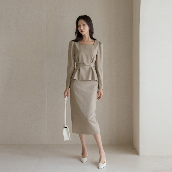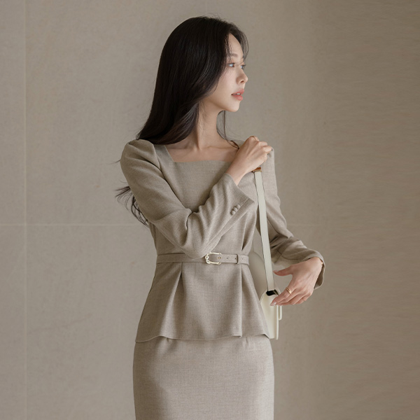 매그 맞주름 Belt Set-up Blouse