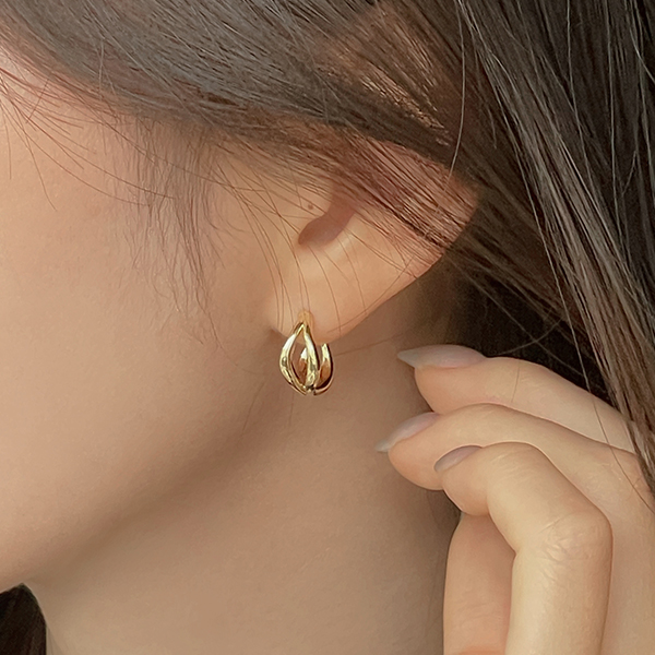 Twin Double Gold Ring Earring