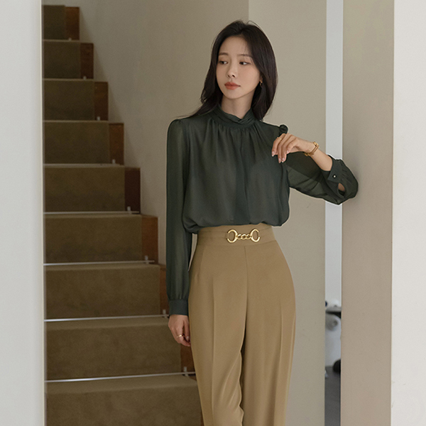 Shirring-Highneck Double See-through Blouse Ⅲ
