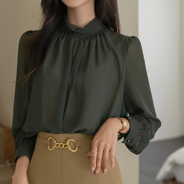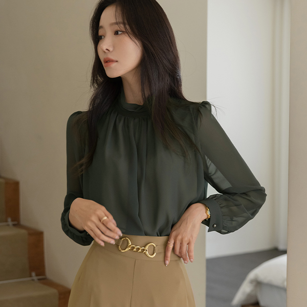 Shirring-Highneck Double See-through Blouse Ⅲ