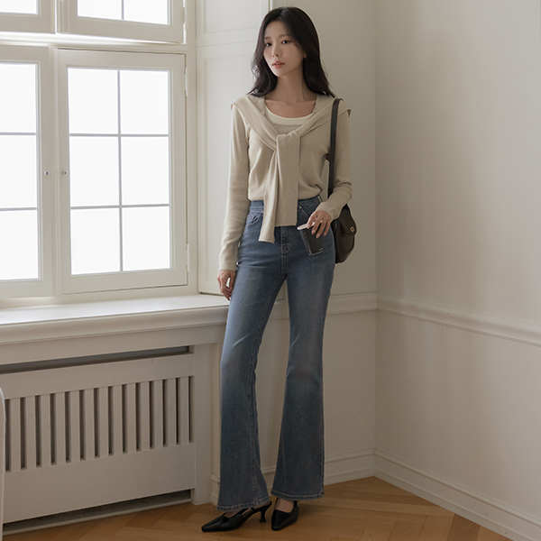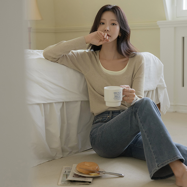 Skily Wool Color Combination layered Knit&Shawl (Set)