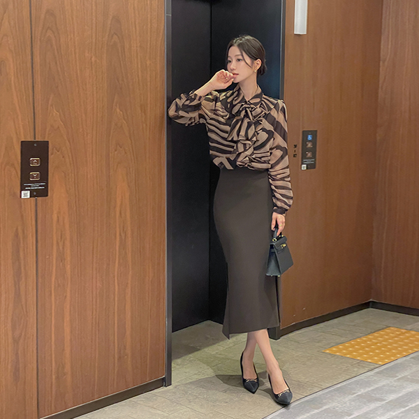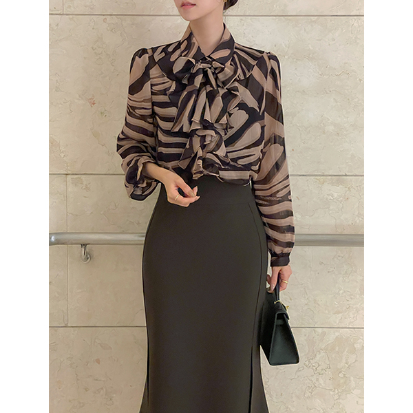 Elegance Printing Patterns Frill Tie Blouse