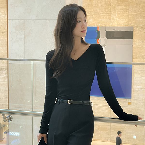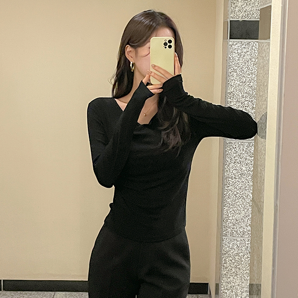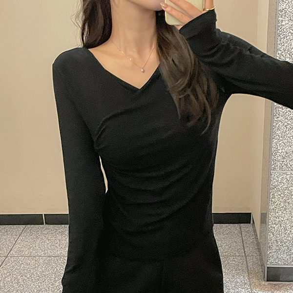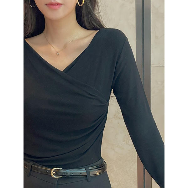 Side Shirring Wrap Style Span T-shirt