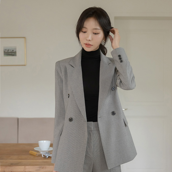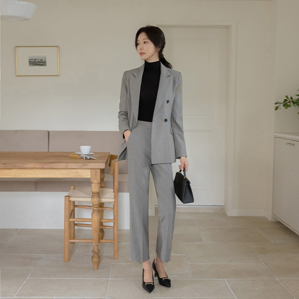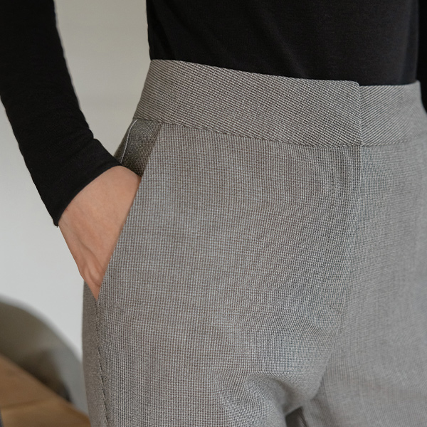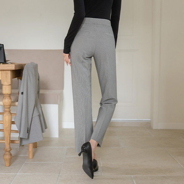 잔잔 Check Slim Slim Fit Set-up Slacks