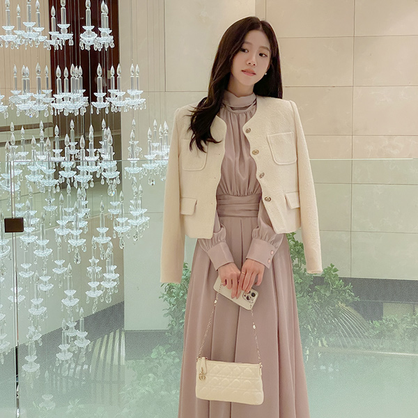 물결 Raund neck Wool Tweed Jacket