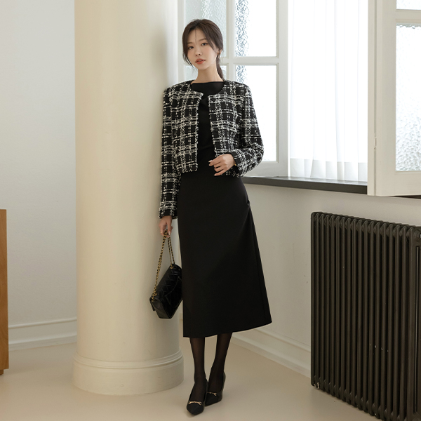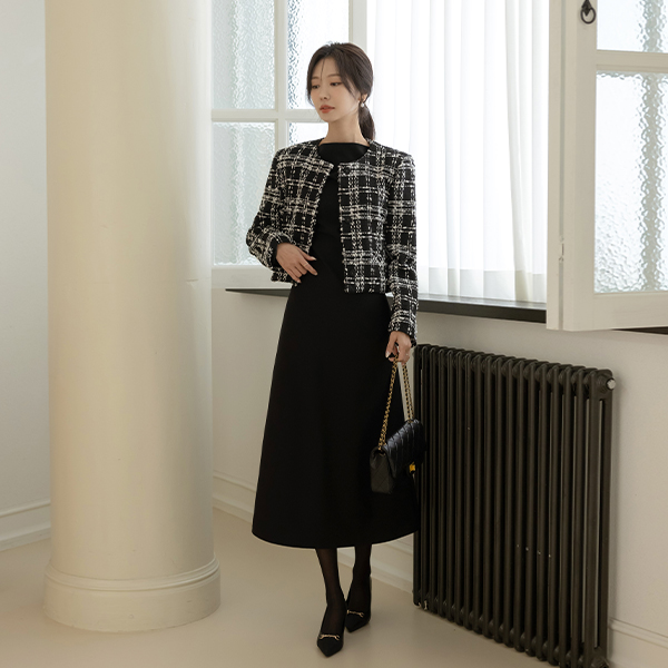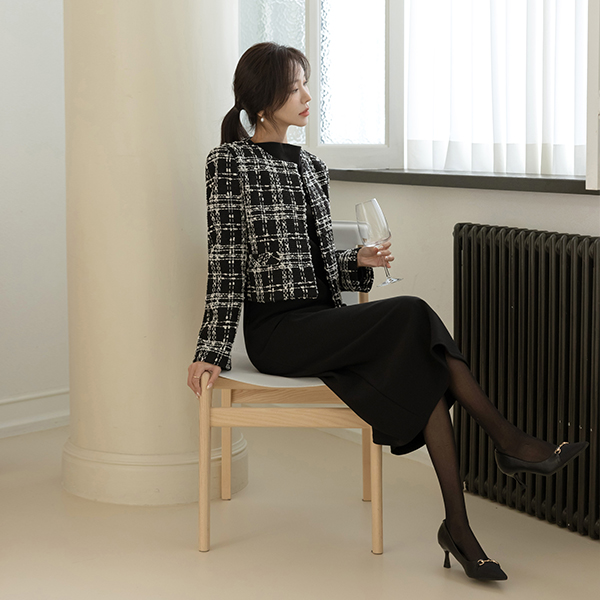 몸매 Correction 쫀득 Half-Neck Shirring Dress