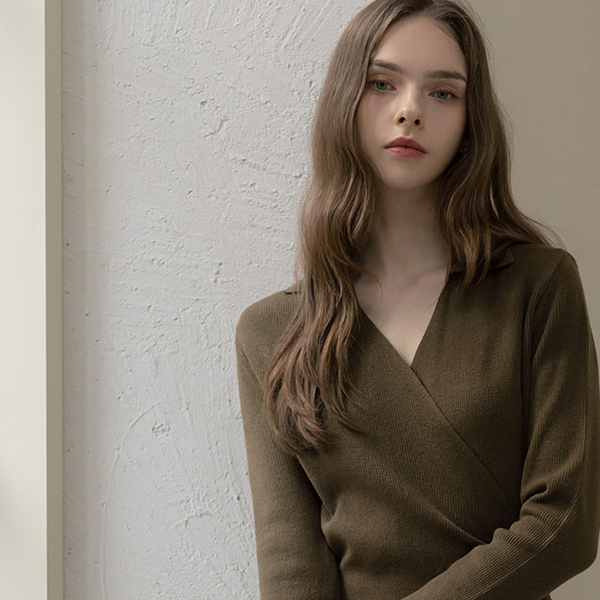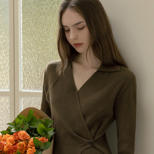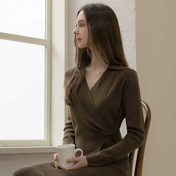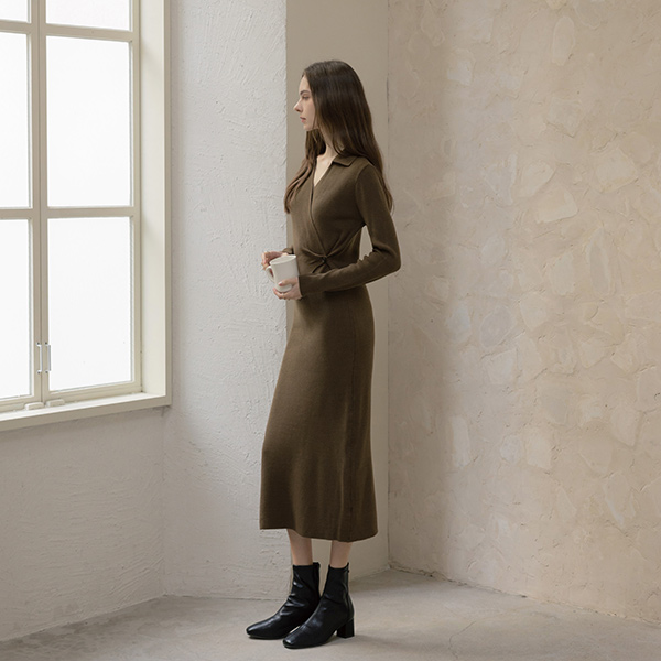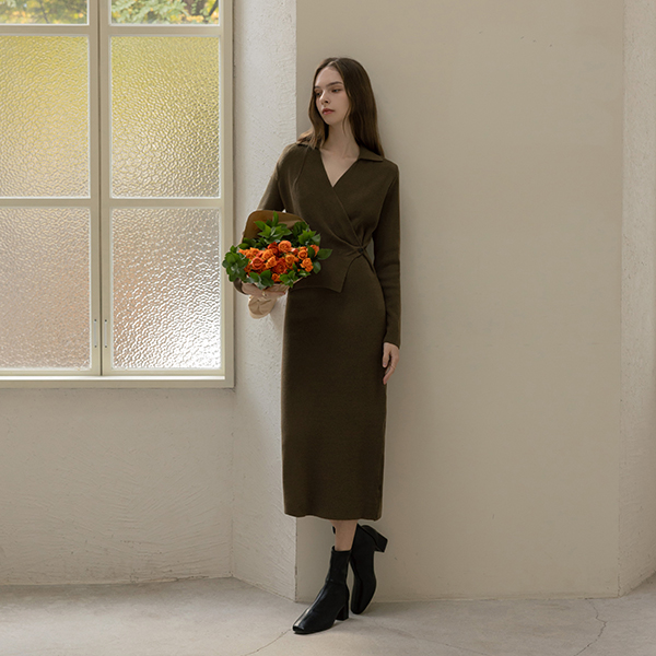 slender Polo Wrap Style Long Knit Dress