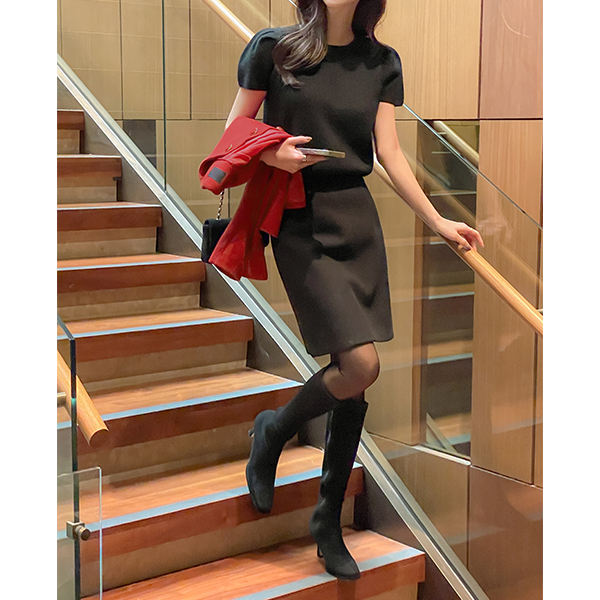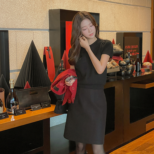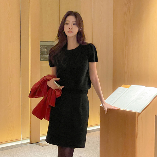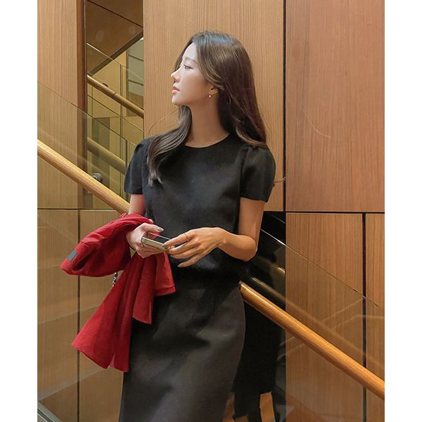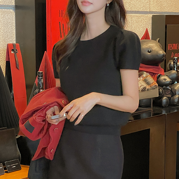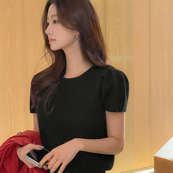 Lovely Puff Wool&Angora Short-sleeve Knit