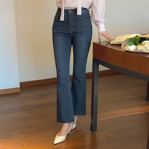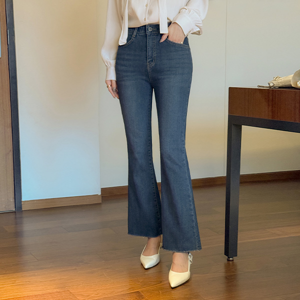 폭닥 Fleece Lining Tight Boot-Cut Denim Pants