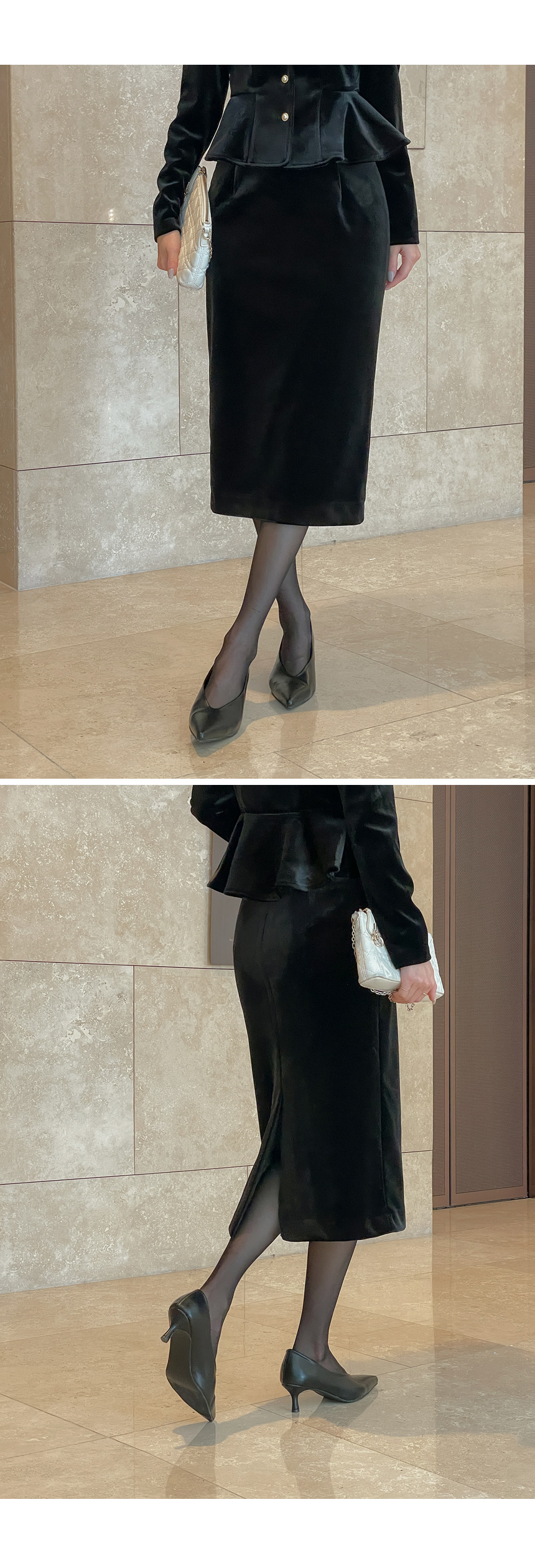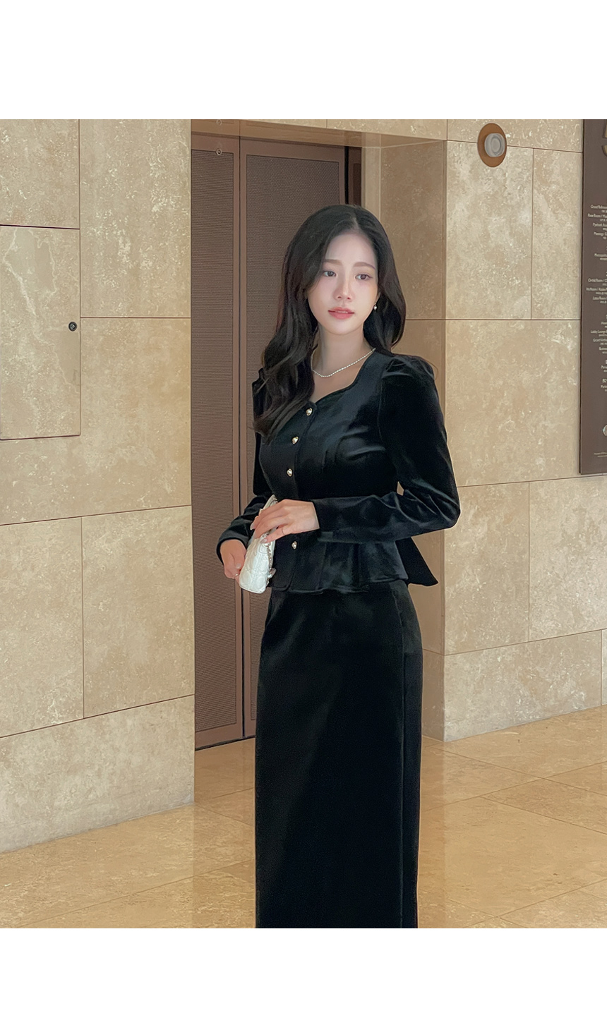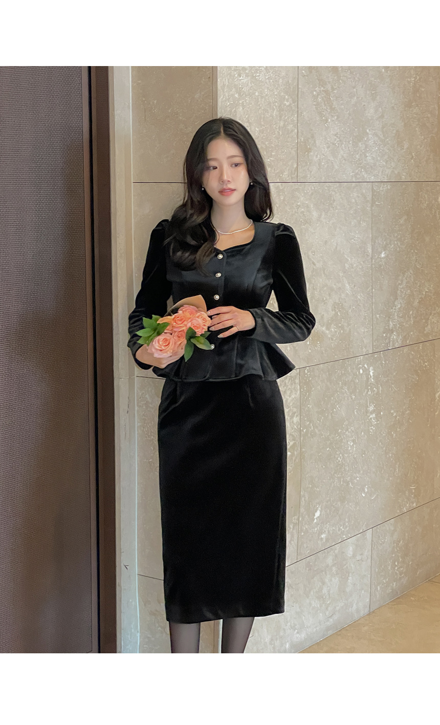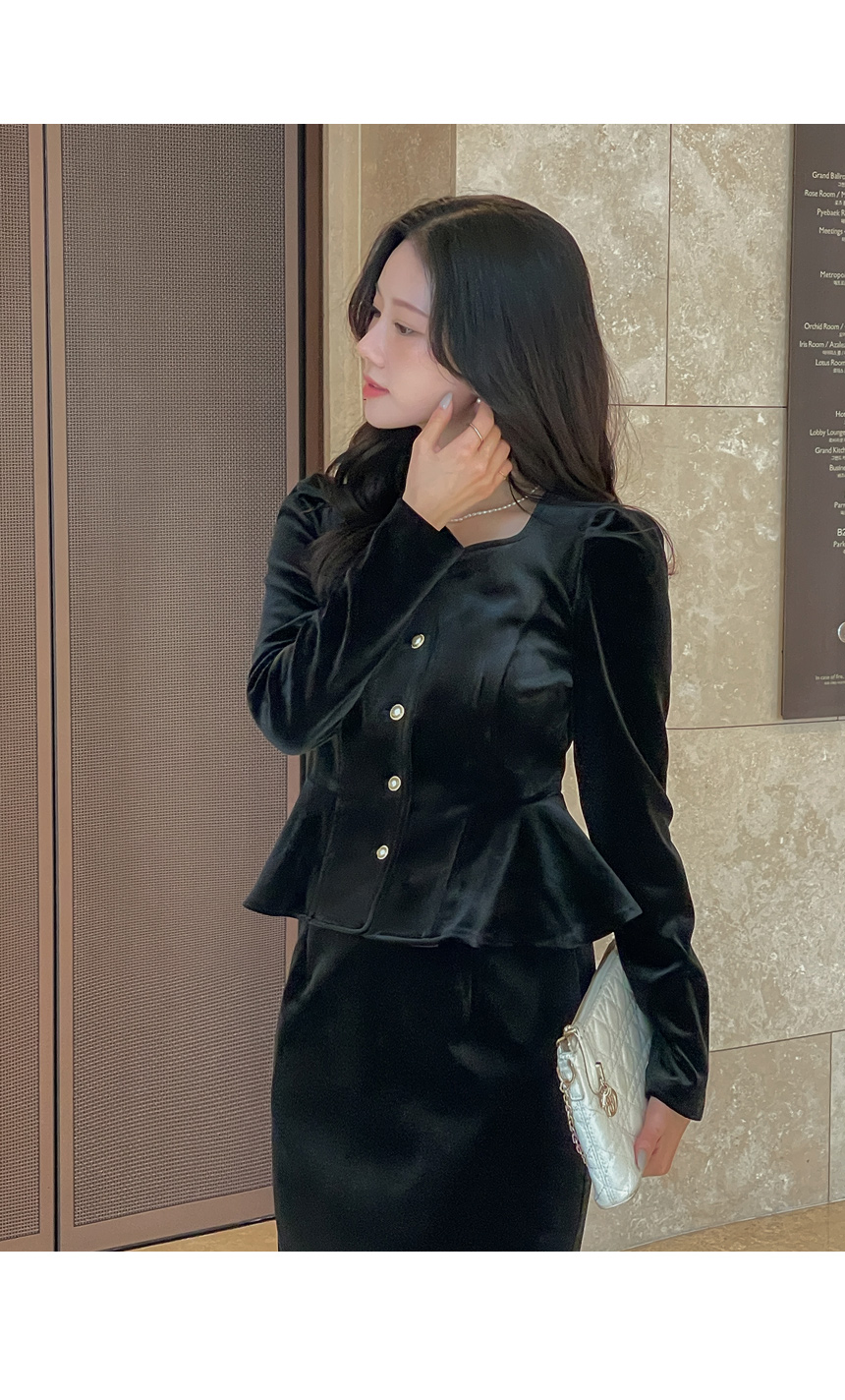 크리스 Velvet Peplum Set-up Blouse