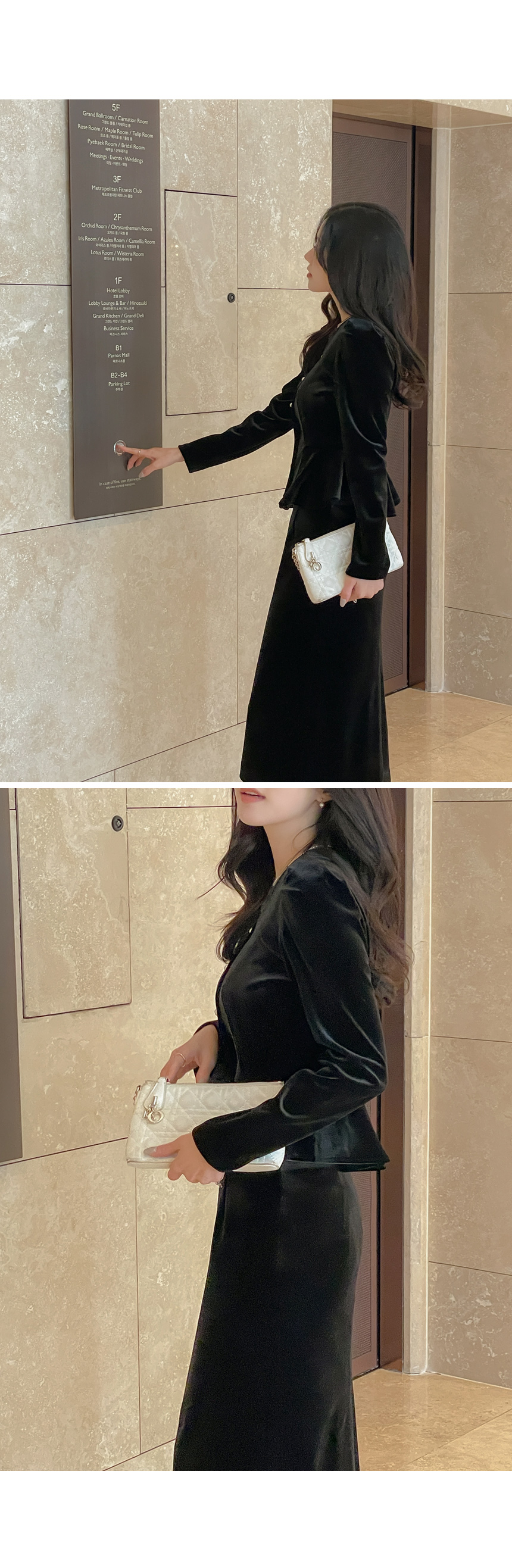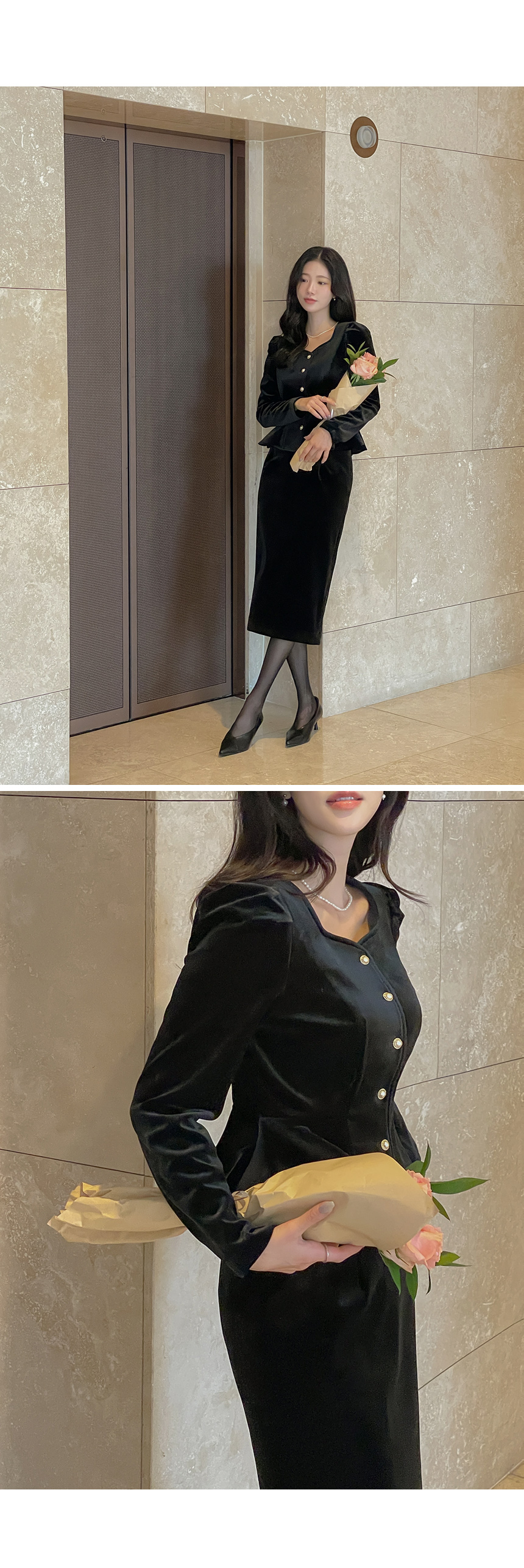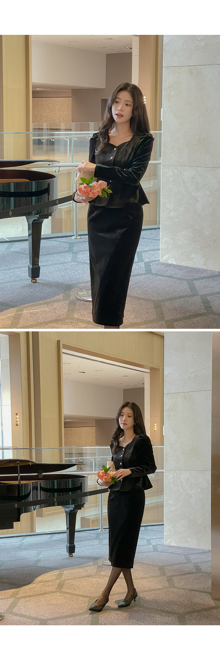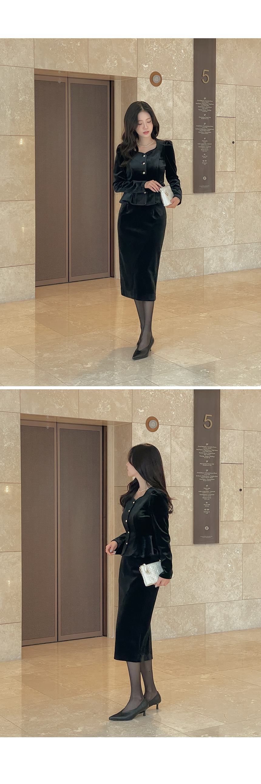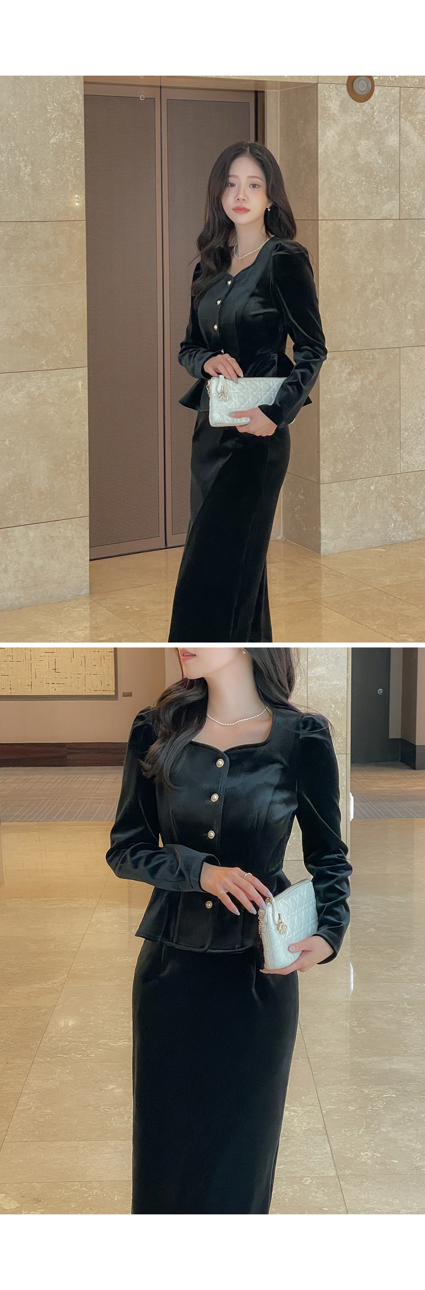 크리스 Velvet Peplum Set-up Blouse