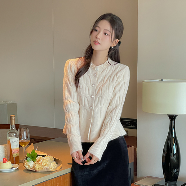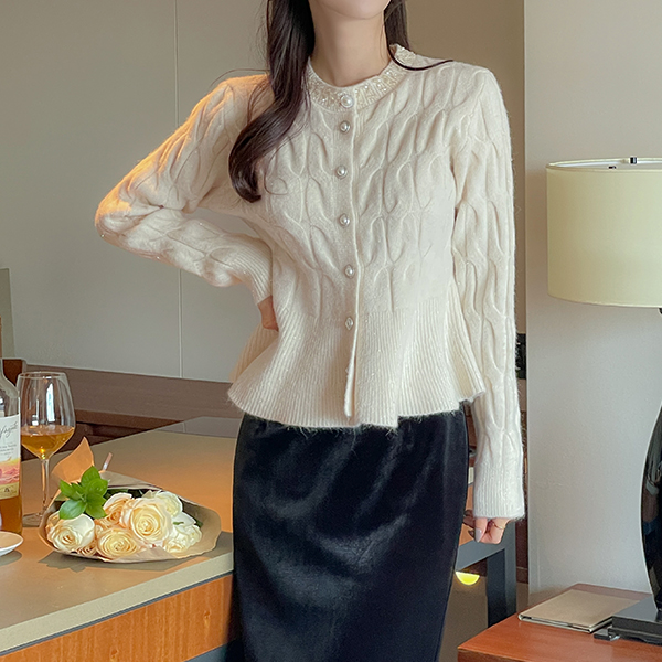 Crystal Pearl Collar Twiddle Peplum Cardigan