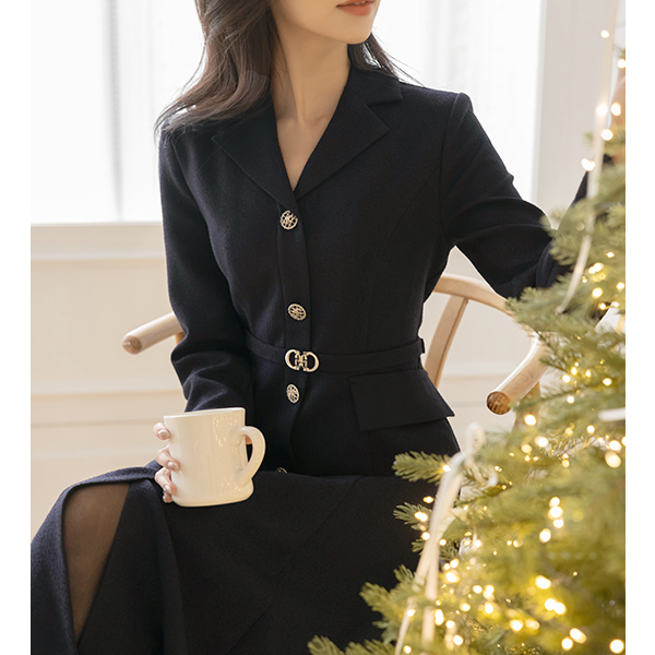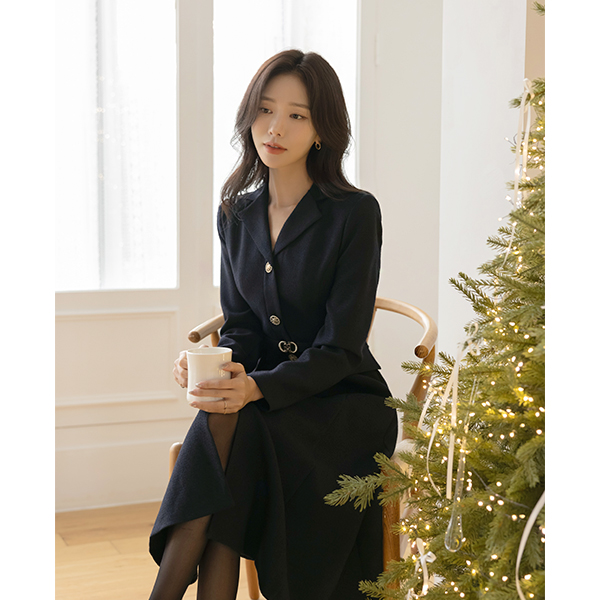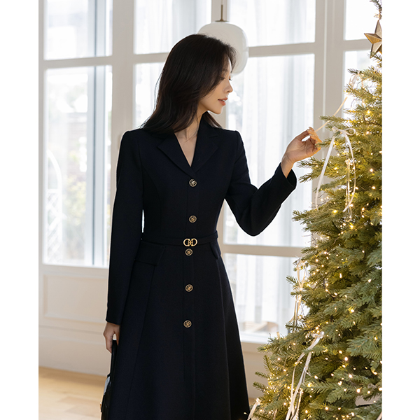 ODE Polo Belted A-line Tweed Dress