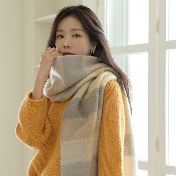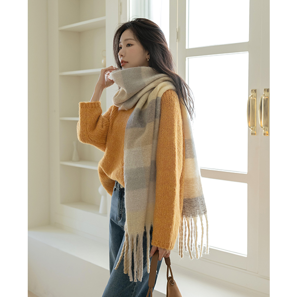 fluffy mix Check Patterns muffler