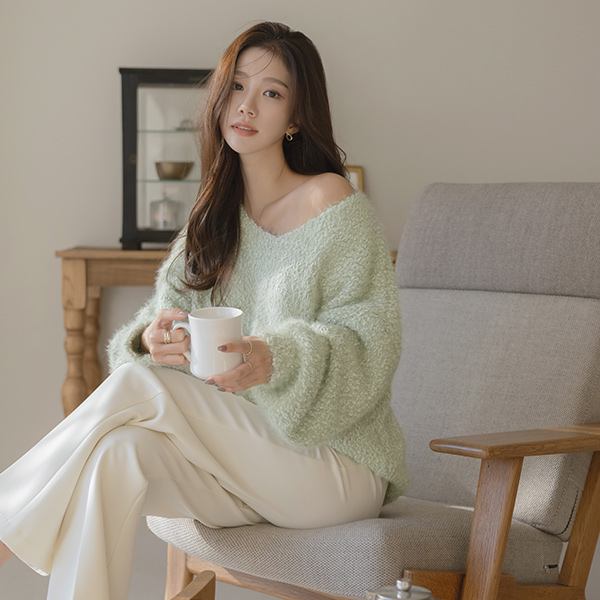 Snow pearl slender loose fit Thick Knit