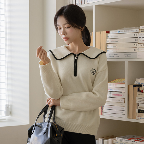 키츠 slender Collar Harp Zip up Knit