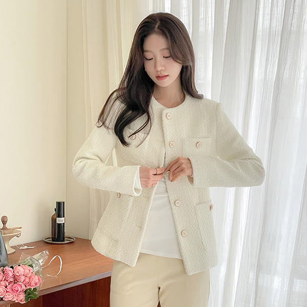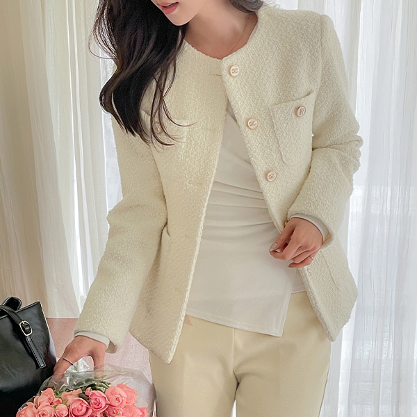 쥬크 Tweed Wool Quilting Jacket