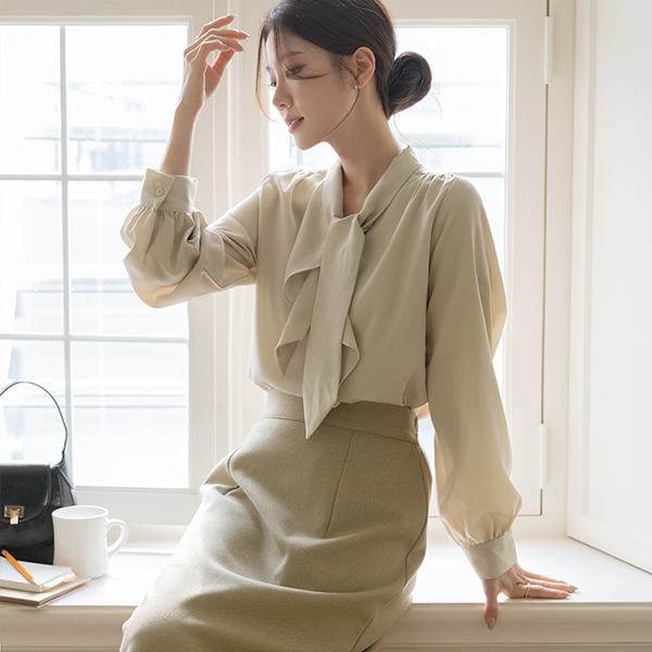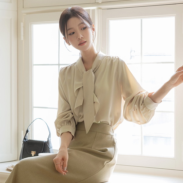 플로우 Ruffle Tie Neck Blouse