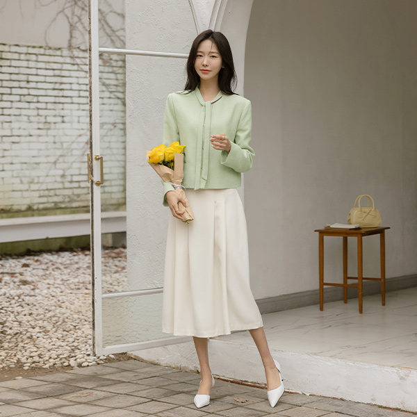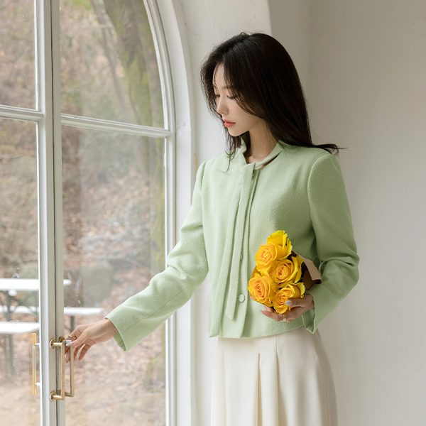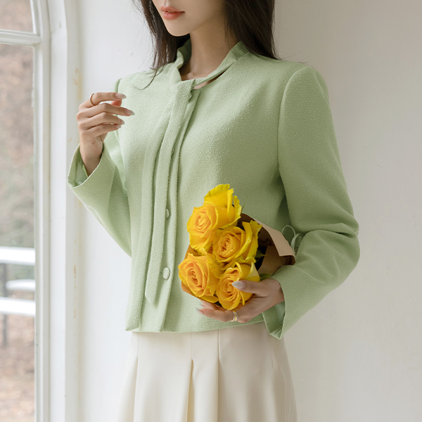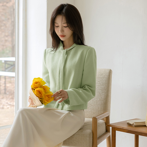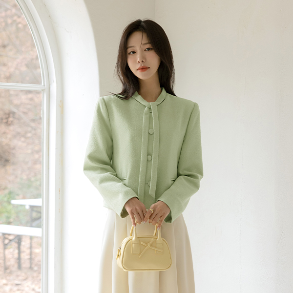 슬로우 Tie Neck Tweed Jacket