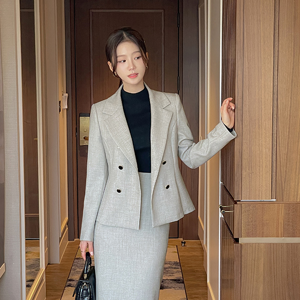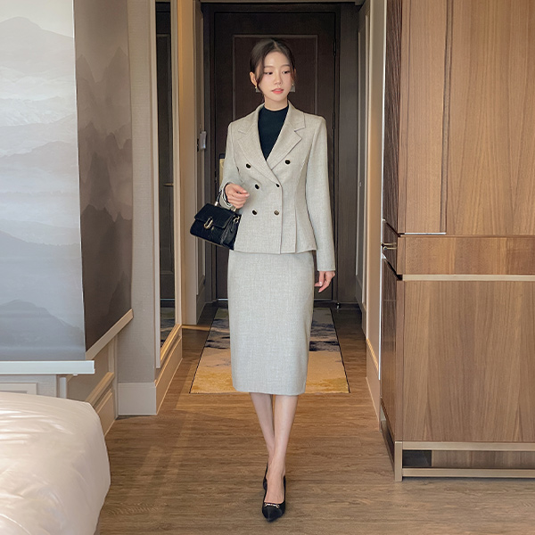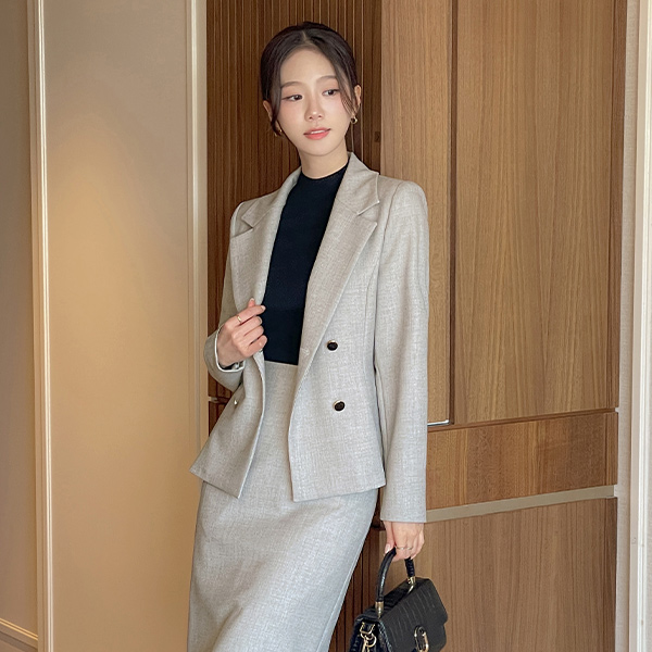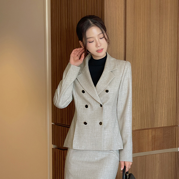 마임 Peplum Silhouette Double Button Set-up Jacket