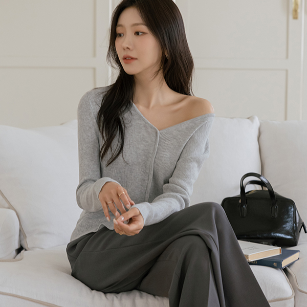 Slim Pretty fit V-neck Center Front Vent Knit