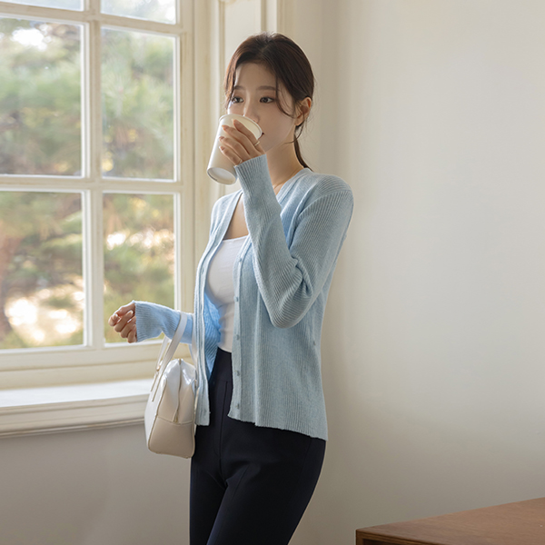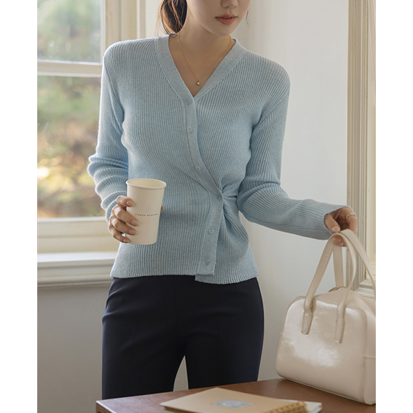 Two-way Unbalance Button Bamboo V-neck Cardigan
