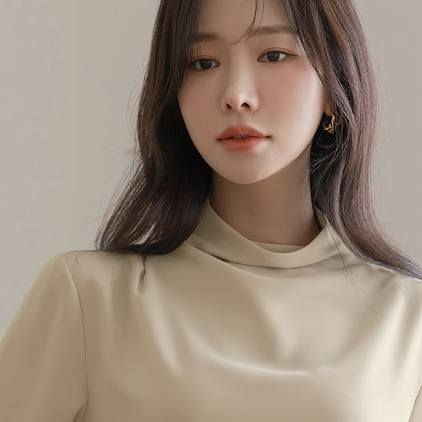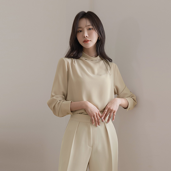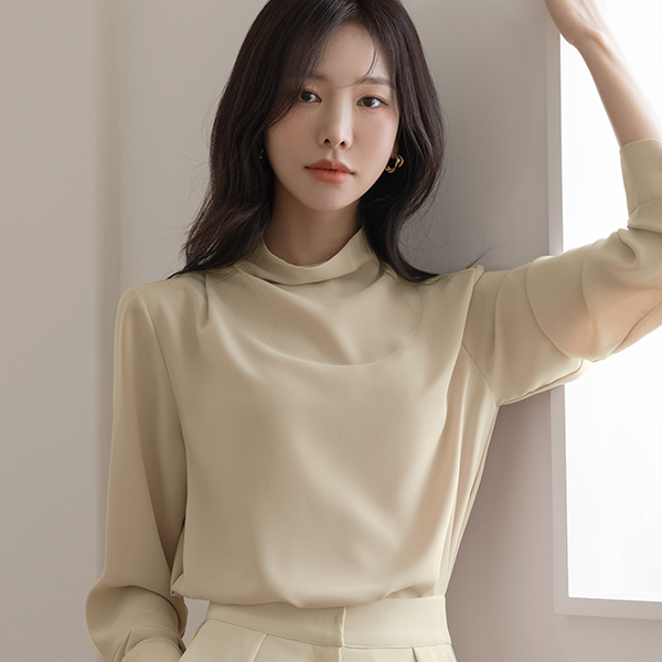 [O:neul] Creamy Half-Neck Elegance Cap-Sleeves Blouse(Long-sleeve)
