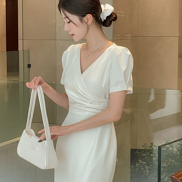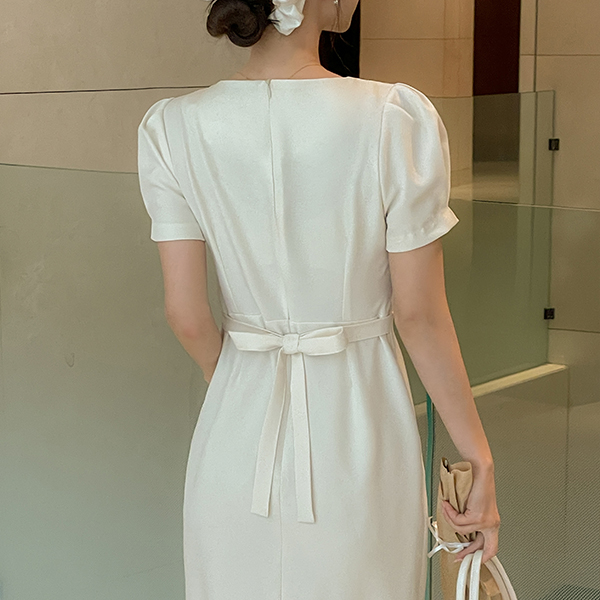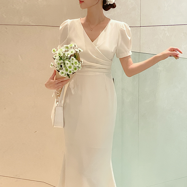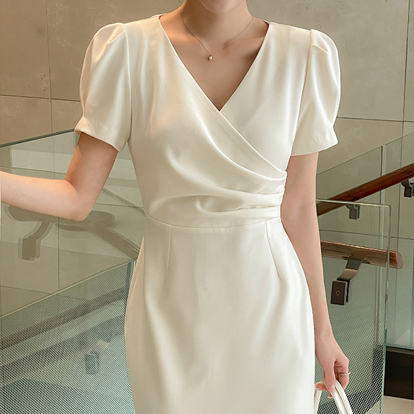 Eli Wrap Puff Sleeves String Dress