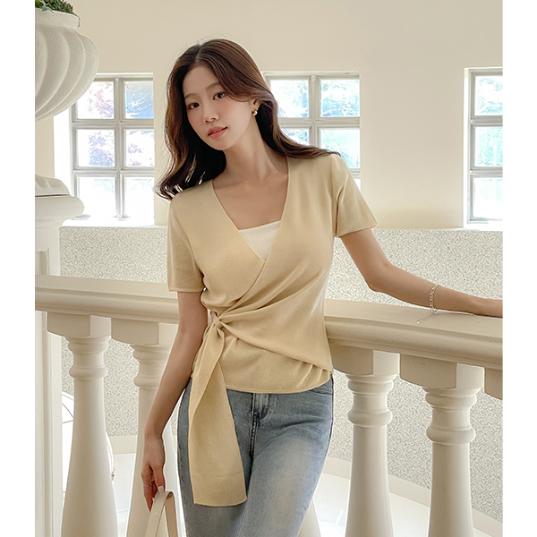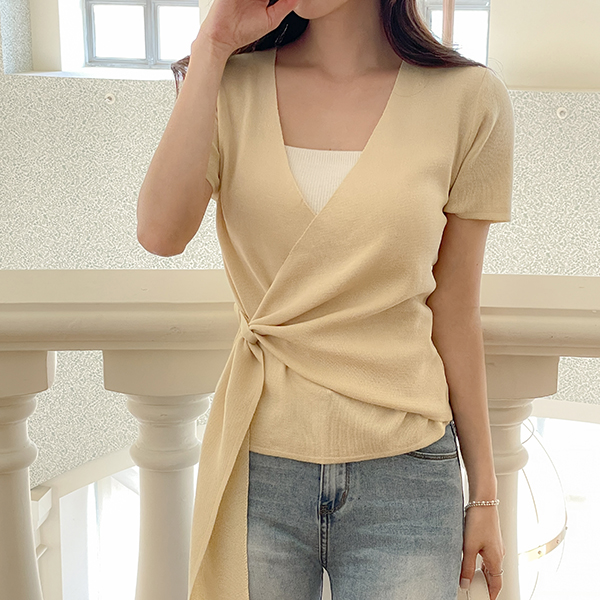 Straight Neckline Cap 내장 Corduroy Sleeveless T-shirt