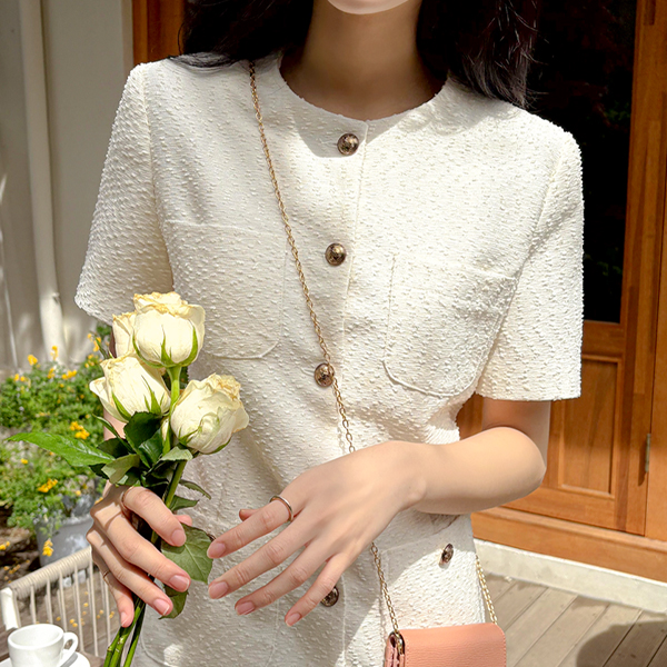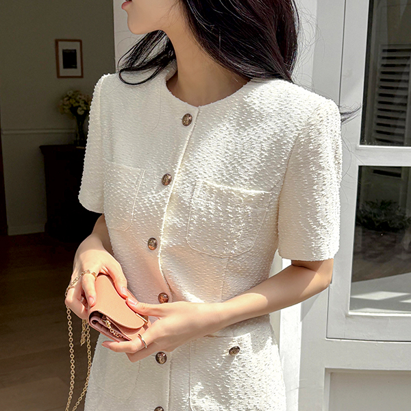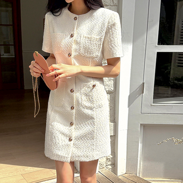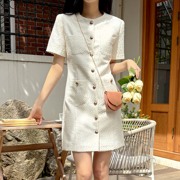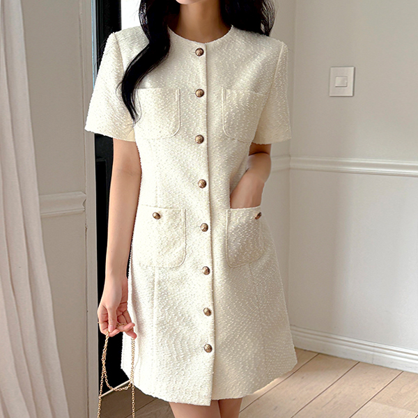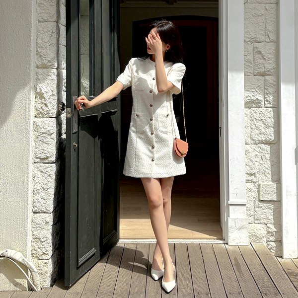 Tweed Antique Button Mini Dress