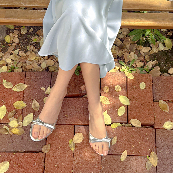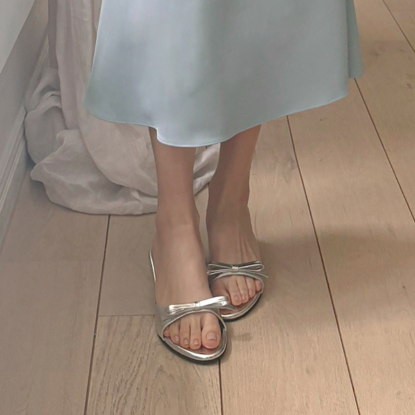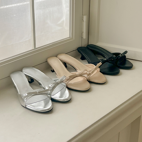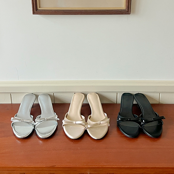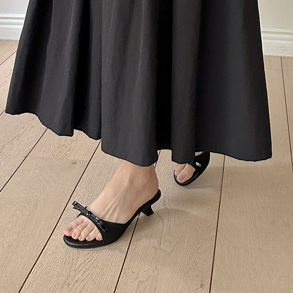 Simple Ribbon Rounding Sandal Heel