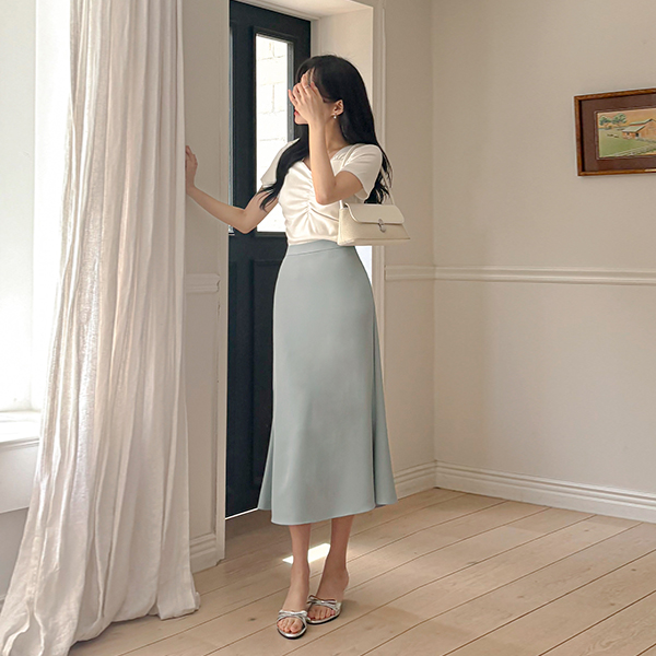 Rustlingly Back Banding Pleats Long Skirt