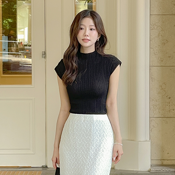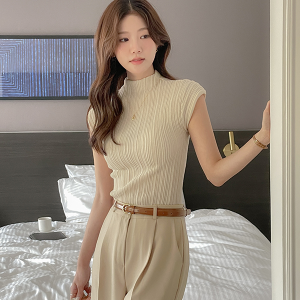 Ensemble Wrinkle 반목넥 Cap-Sleeves Knit