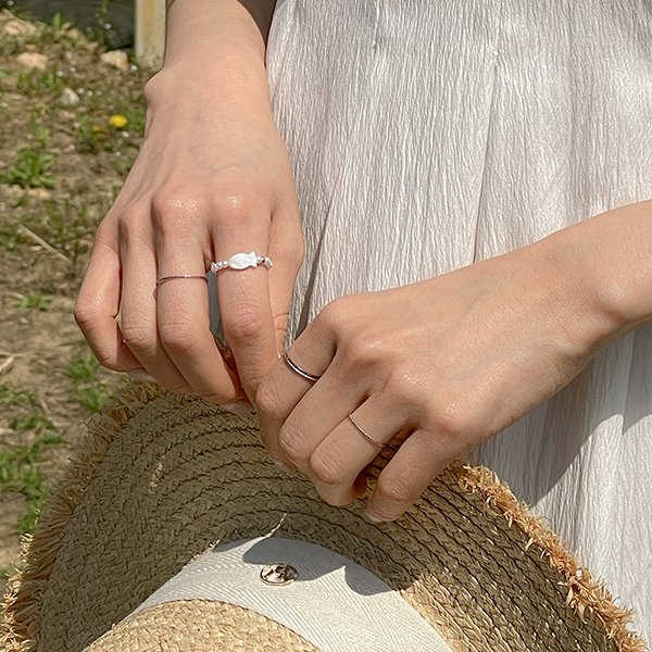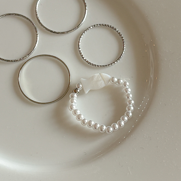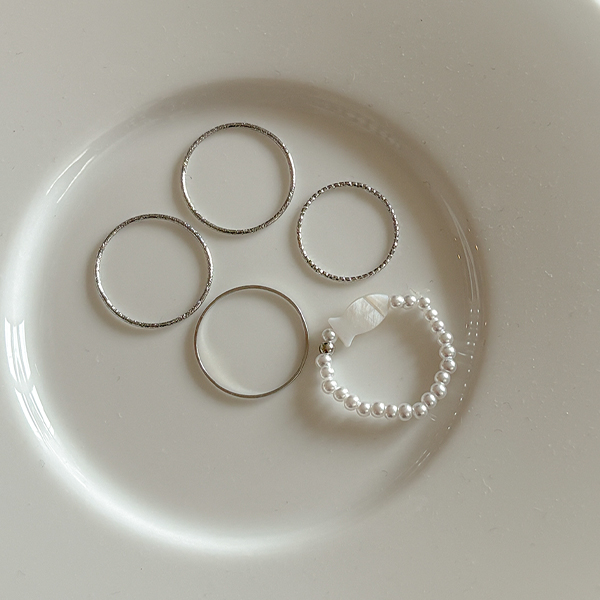 minimal 피쉬 Pearl&Silver Ring(5set)