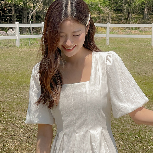 Puff Sleeves Pintuck String Dress