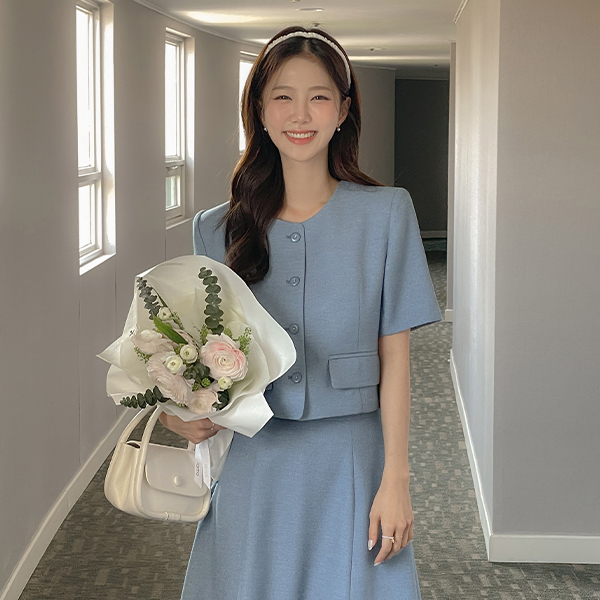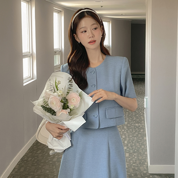 Tweed Linen Crop Set-up Jacket