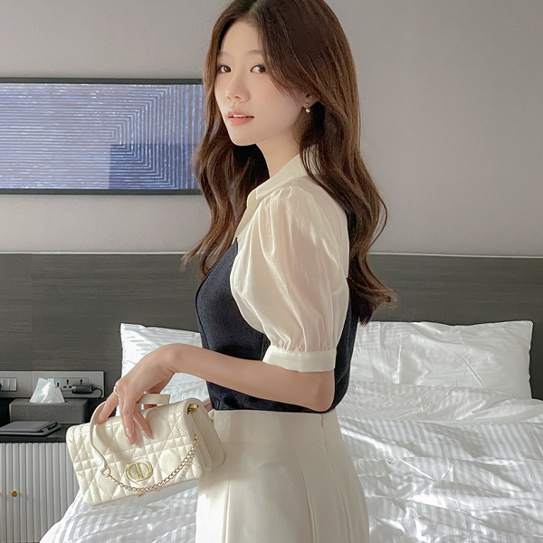 Color Combination Tweed Bustier See-through Blouse