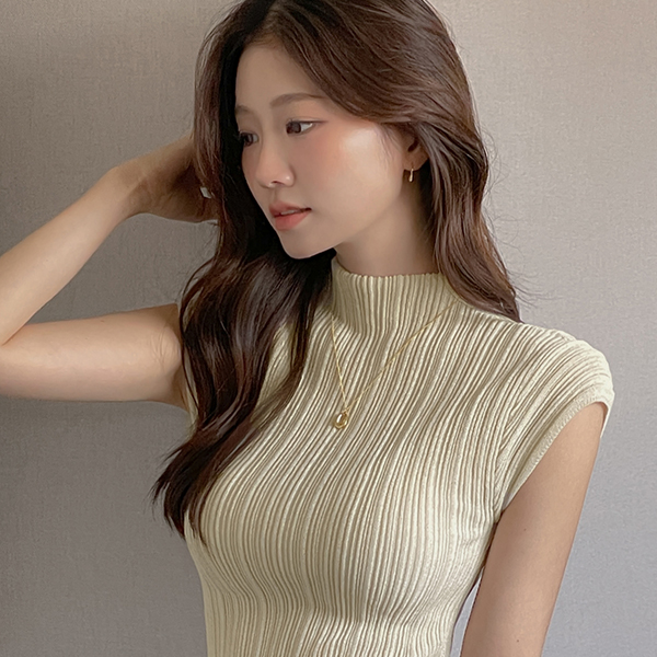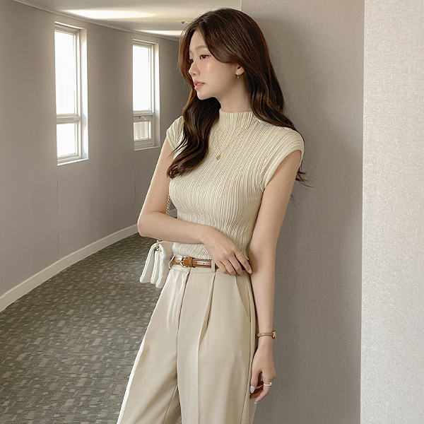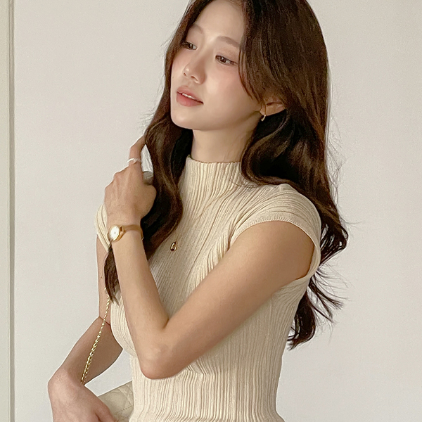 Ensemble Wrinkle 반목넥 Cap-Sleeves Knit