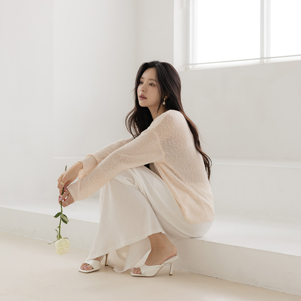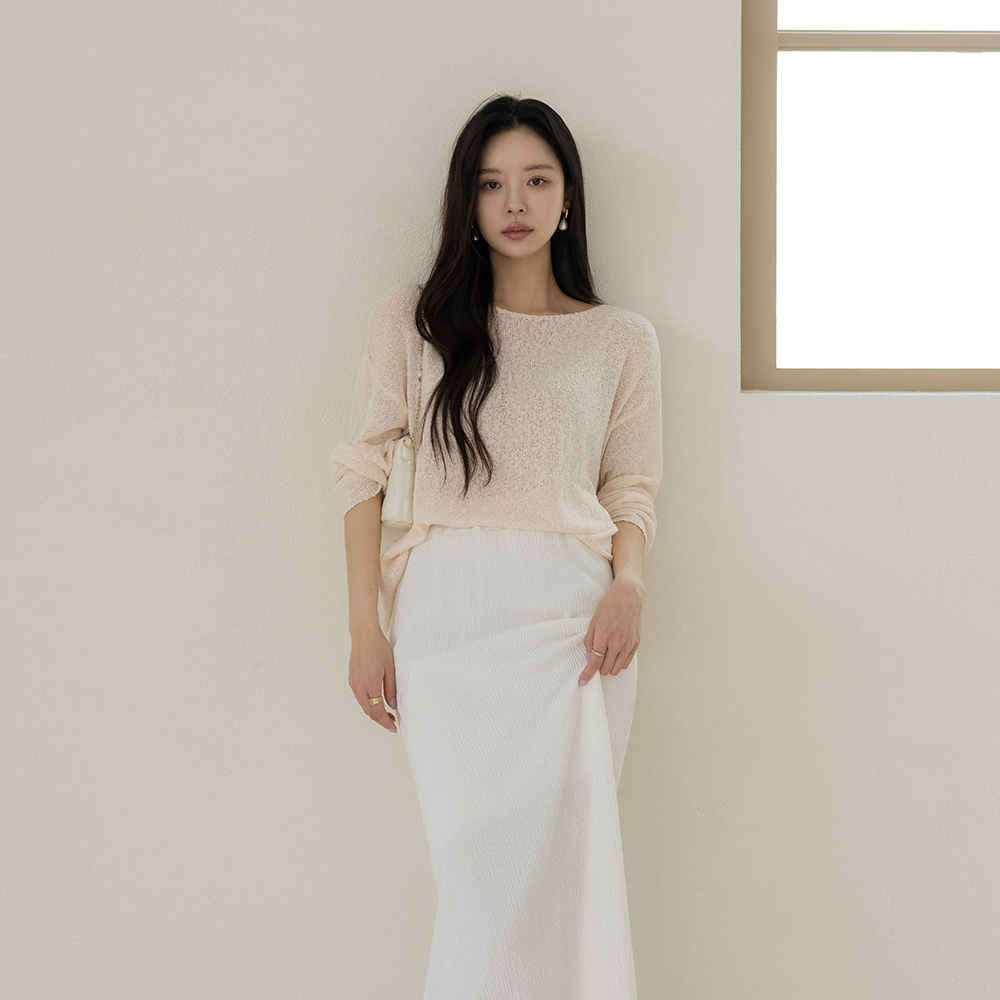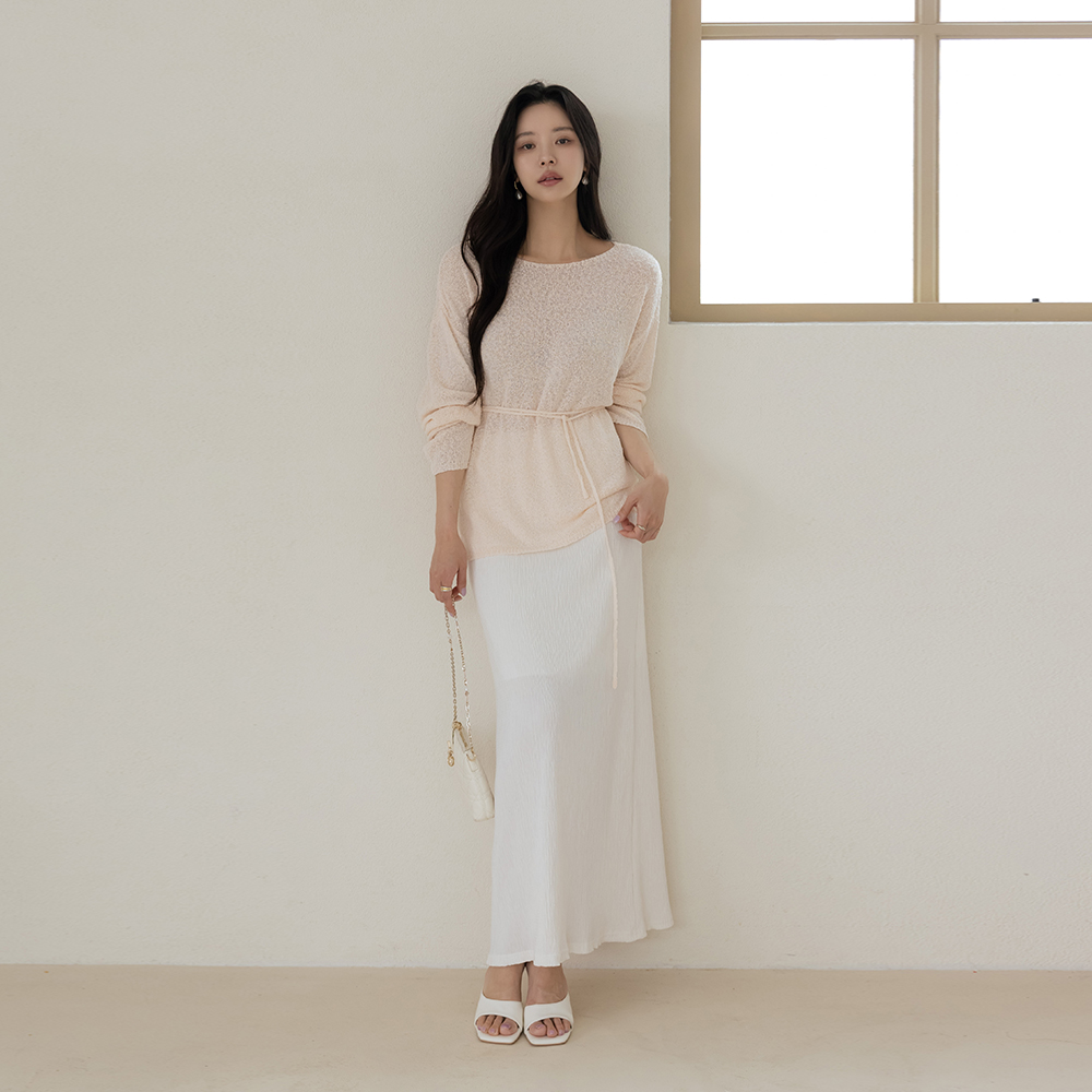 Peach slender Bouclé Boat Neck Knit(+Belt)