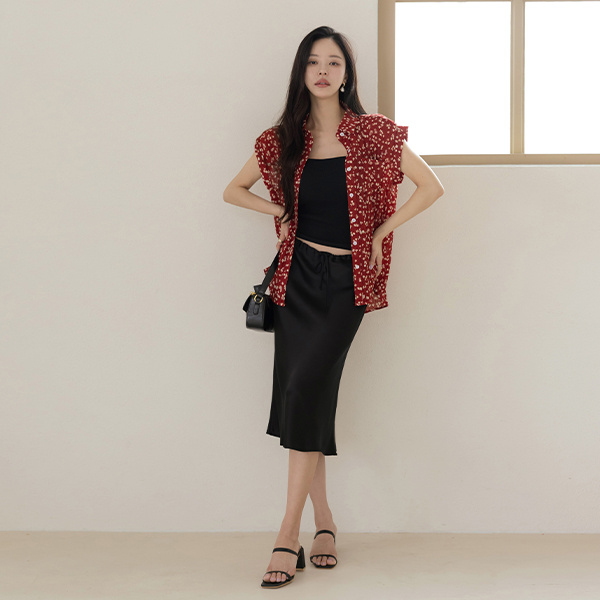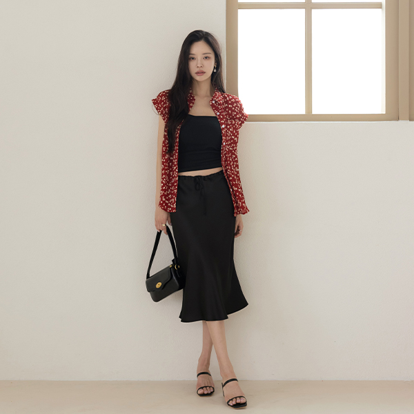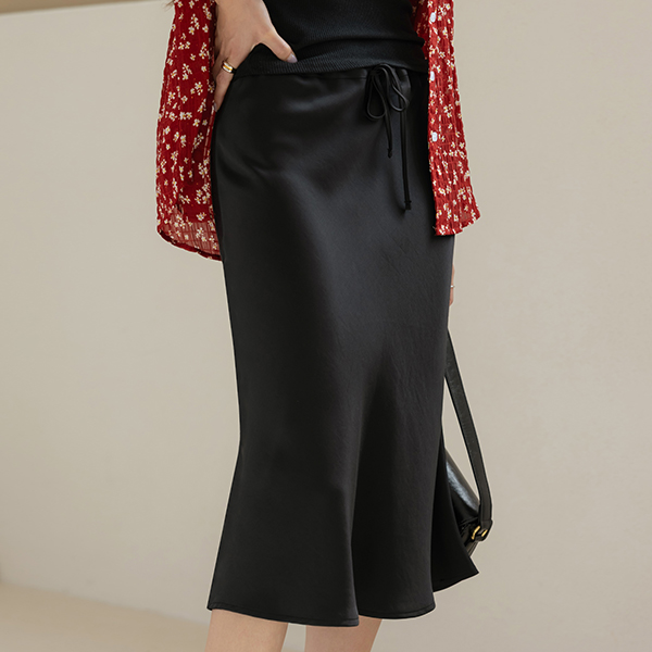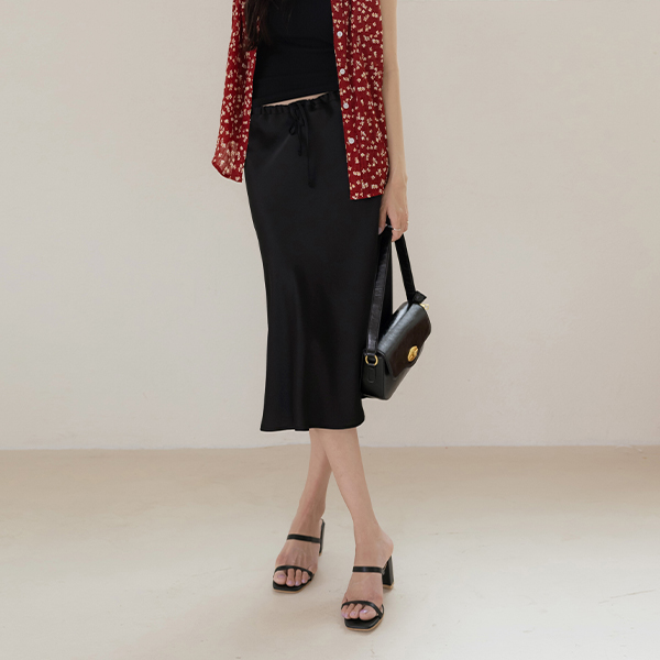 String Satin Midi Skirt