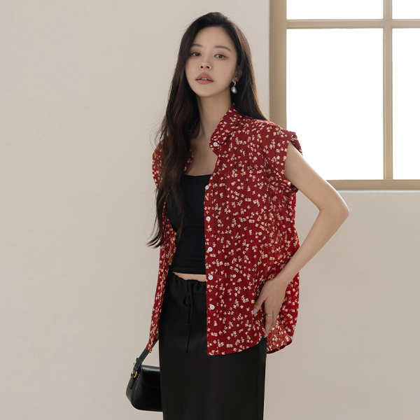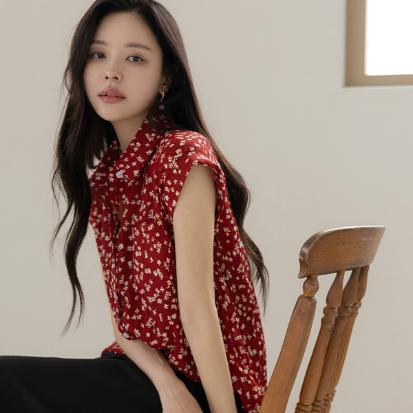 Floral Collar Wrinkle Roll-up Shirt