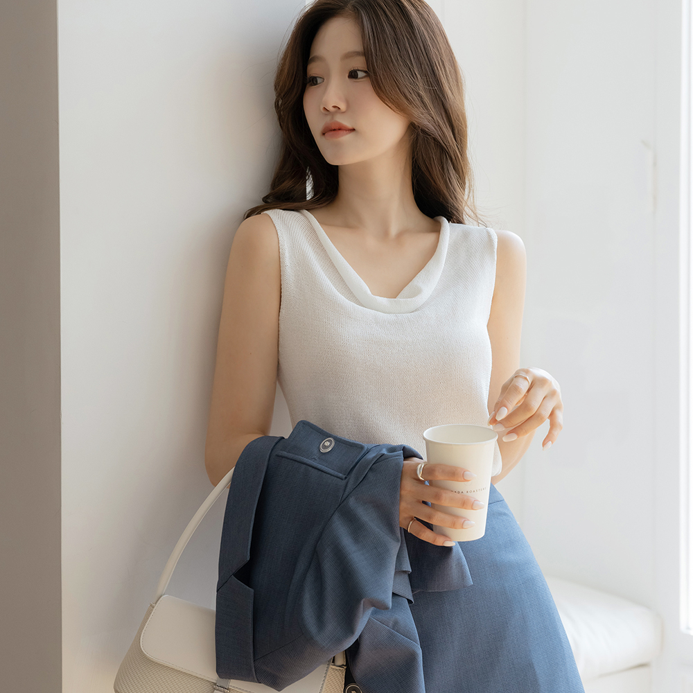 Summer Pastel Cowl Neck Sleeveless shirts Knit