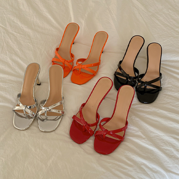 Glossy Strap Sandal Heel