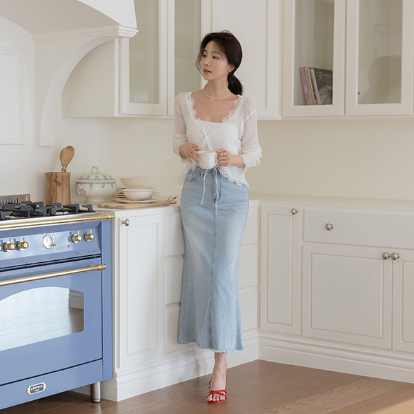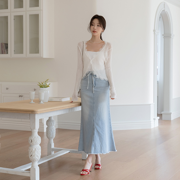 Laura Span Denim Long Skirt(+Belt)