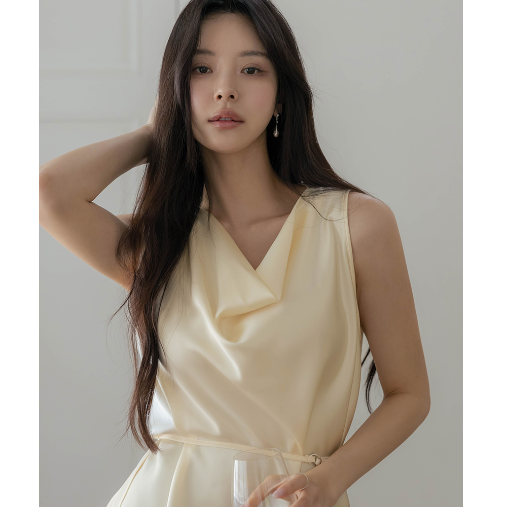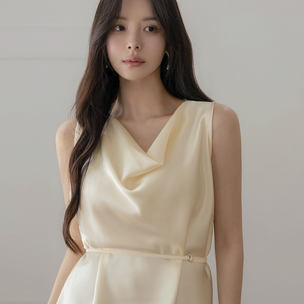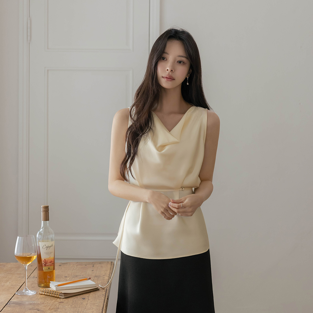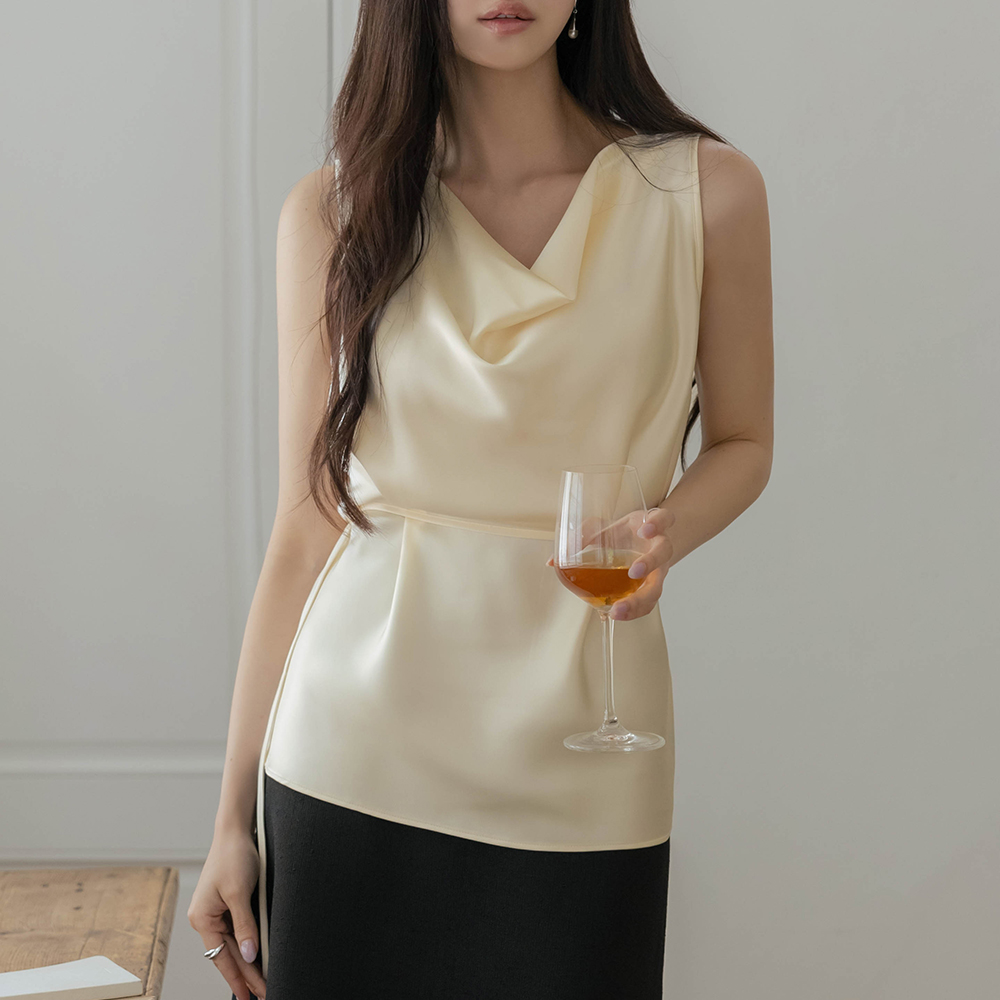 Luxury Cowl Neck Satin Blouse(+Belt)