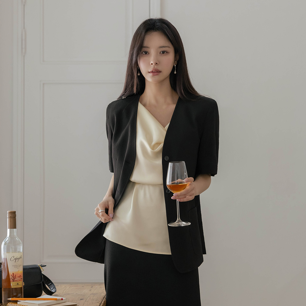 Luxury Cowl Neck Satin Blouse(+Belt)