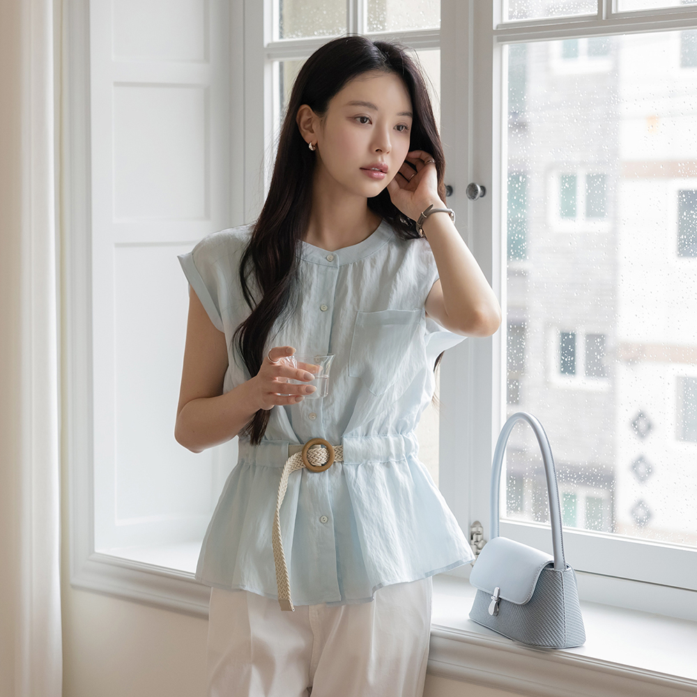 Raund neck Belt Shirt Blouse(+Belt)