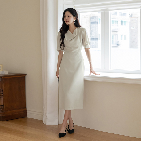 Cowl Neck Back Ribbon H-line Dress